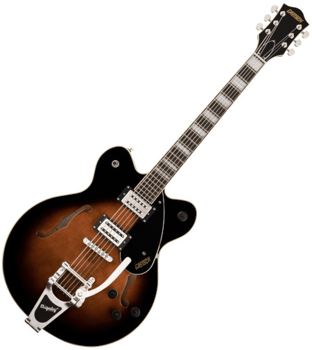 All the classic eye-catching style you've come to expect from Gretsch is here! Vintage-style black control knobs, enlarged F-holes for increased acoustic projection, elegant aged white binding with upgraded purfling, slick-looking nickel hardware, three-ply black pickguard and arched laminated maple construction. Nearly impossible to put down once you pick it up and start playing, the G2622T has the updated sound and classic style that has earned Gretsch accolades since the dawn of rock �n' roll.