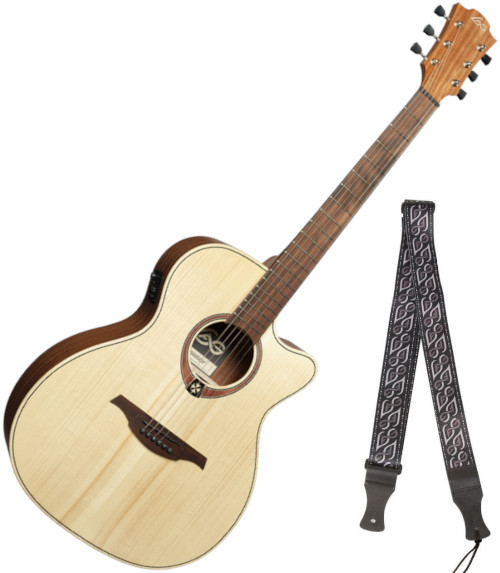 LAG T70ACE Natural Electro-Acoustic Guitar + FREE Guitar Strap