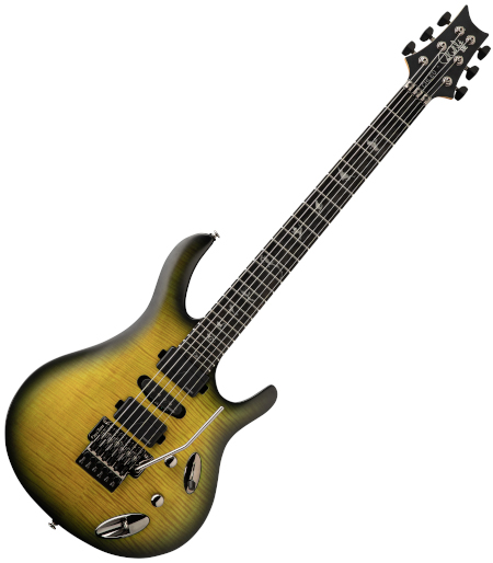 The PRS SE Chleo features a maple top and mahogany back with maple neck and ebony fretboard. The body features a sculpted carve that allows it to be very thin and very lightweight overall, so you can play longer and with more energy. The neck shape and neck joint were specially designed to be comfortable and fast. The neck is very thin front-to-back with a slightly taller playing surface and 20� fretboard radius, and the added high-modulus carbon fiber strength rods ensure a strong neck that promotes sustain. The fretboard features "Eclipse Dragon" inlays, and PRS's trademark scoop has also been modified for ultimate access to the upper frets. All this plus a Floyd Rose locking tremolo mean you can dig in and play hard without sacrifice.