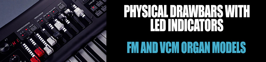 - Physical drawbars with backlit LED's for easy viewing on dark stage environments